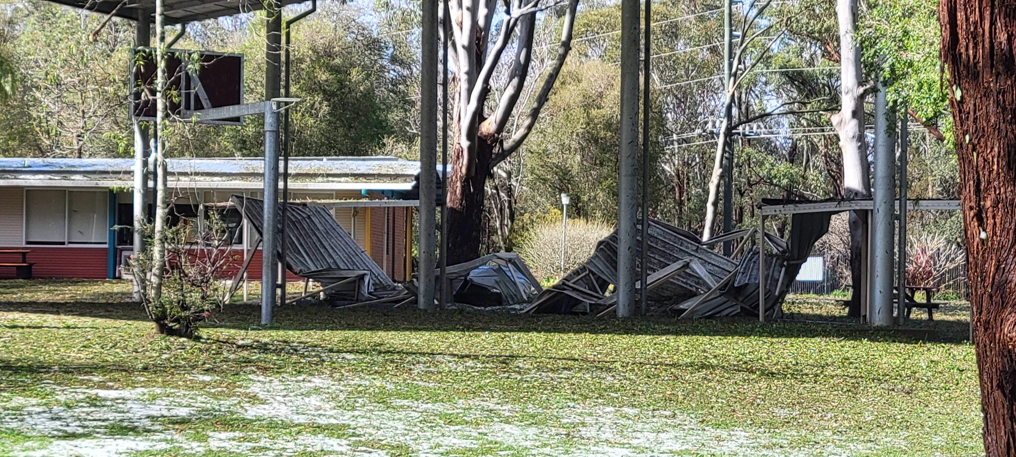 A severe hailstorm and ferocious winds have hit the Coffs Harbour area on the New South Wales Mid North Coast causing the roof of a shopping centre at Toormina to collapse and damaging other businesses and homes. Reports of kids stuck in school classrooms roofs collapsing and buildings floodingCoffs Harbour is a c. ADVERTISEMENT A severe hailstorm and ferocious winds have hit the Coffs Harbour area on the New South Wales Mid North Coast causing the roof of a shopping centre at Toormina to collapse and damaging other businesses and homes.